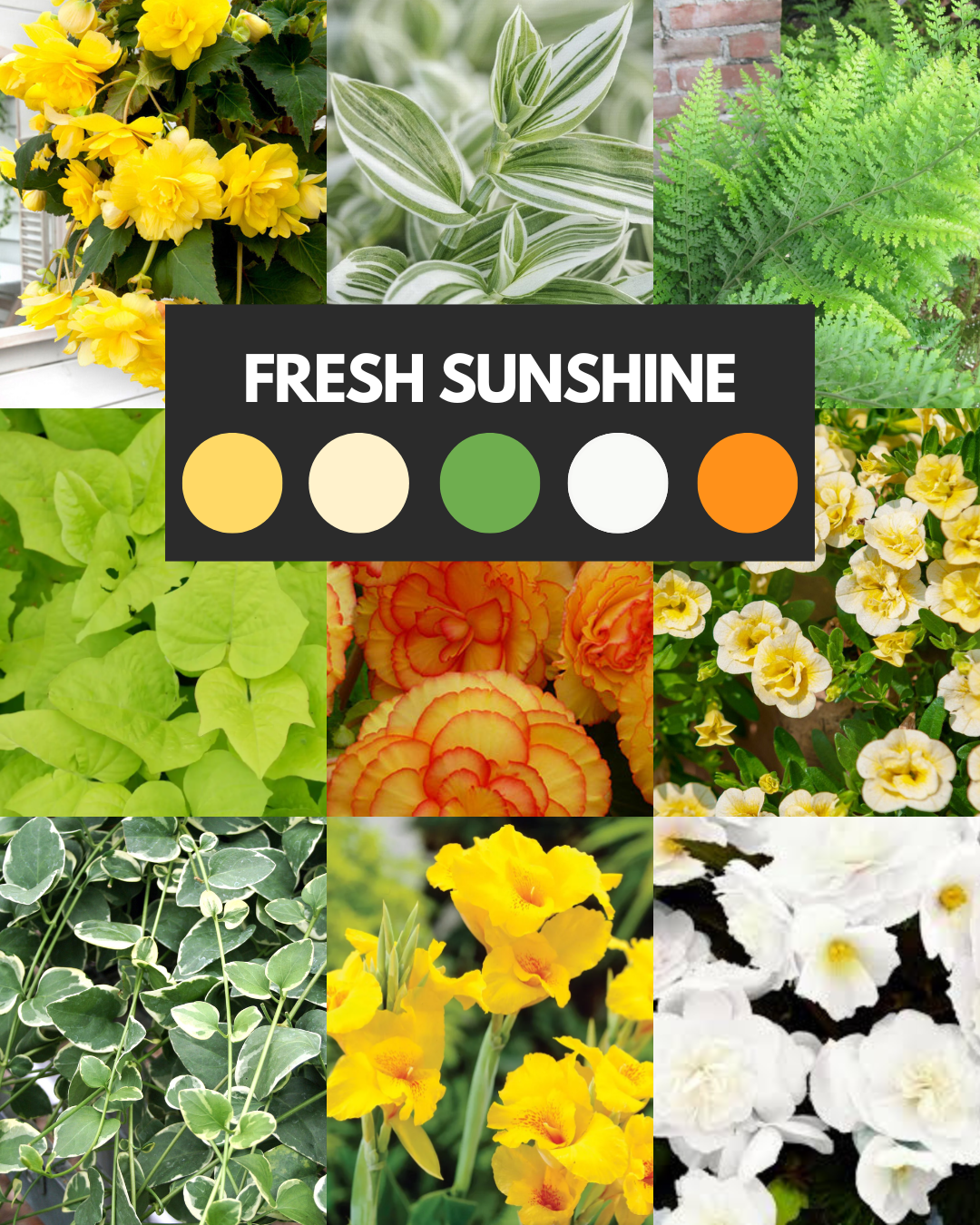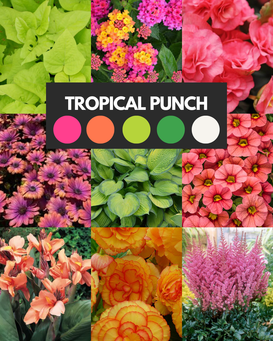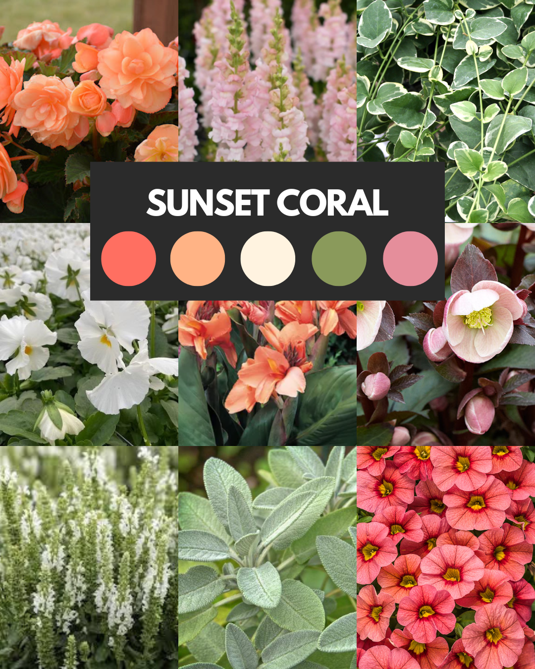 | Flower & Plant Color Palette | Classic White & Green, Fresh Sunshine, Blush & Berry, Lavender Mist, Pink Lemonade, Fiery Vibrance, Sunset Coral, Petal & Sky, Tropical Punch |